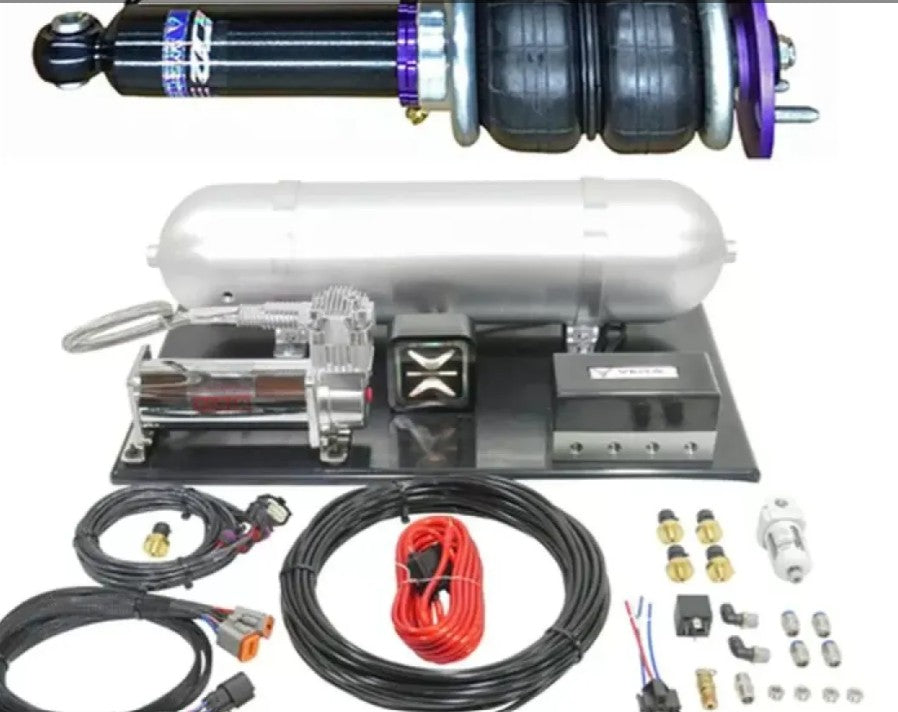 D2 Racing Air Struts allow for adjustment through both the lower mount and inflatable sleeve or double bellow style air bellow which allows for ultimate range of ride height adjustment. Each air shock features a 36-way damping adjustable design for fine-tuning of ride quality and responsiveness.