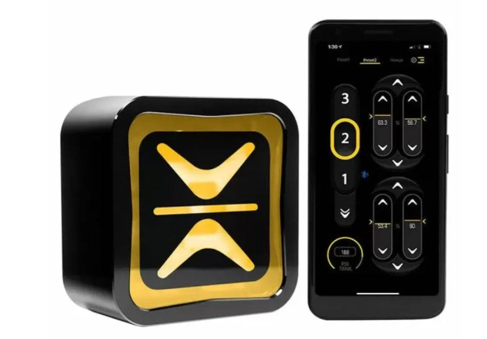 The AccuAir e+ Connect Pressure is the latest generation of AccuAir controller, which allows you to control your suspension through the e+ App or TouchPad controller (sold separately) with three presets. Pressure based system allows for simple installation and higher reliability over height sensor kits. Features 5.0 Bluetooth for the highest level of stability/range, over-the-air updates, RGB backlit with user-customizable color and ride-height-on start.