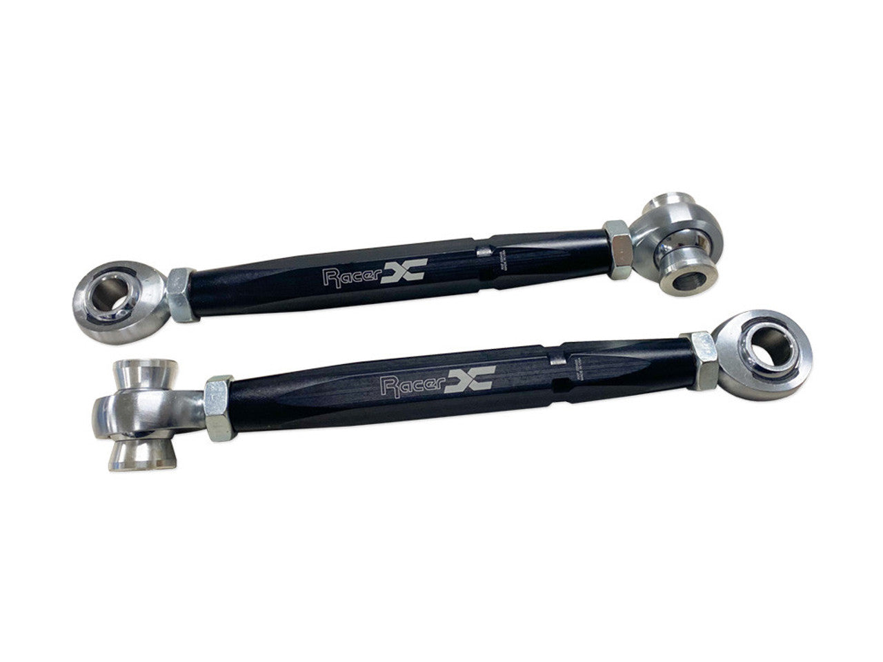 The Racer X Fabrication rear toe links for the 2022+ Toyota GR86 / Subaru BRZ offer the ability to give your vehicle proper toe adjustment after changing your camber beyond OEM specifications. Offers complete adjustability of toe on the vehicle. The rear toe links also come with bump steer adjustment, which helps to correct suspension geometry after lowering. The rear toe links are CNC machined from 6061-T6 aluminum to reduce weight, improve strength and increase rigidity. Comes standard anodized black for corrosion resistance.